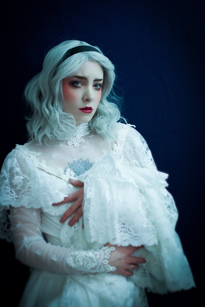 This wedding dress from the photography wardrobe was perfect for a Dark Baptism and was a great fit for a Sabrina Spellman cosplay